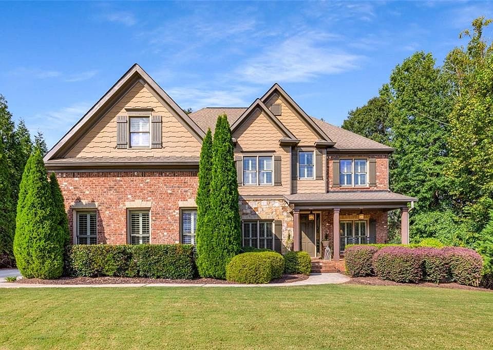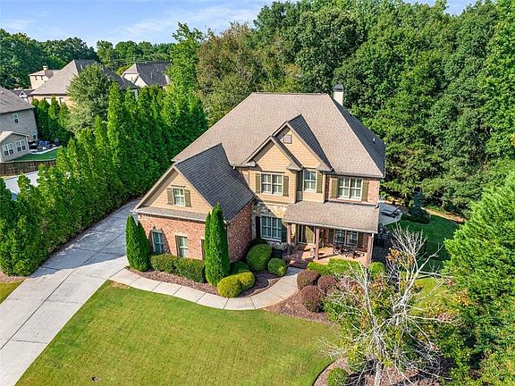 Discover the epitome of elegance and comfort at 5245 Wilshire Crossing, located in the popular Telfair neighborhood. This exquisite home, custom-built by Alex Tetterton, offers a harmonious blend of luxury and functionality, and is conveniently close to top schools, parks, walking trails, and shopping. Upon entering, you're welcomed by high ceilings and hardwood floors that flow into the bright family room, where an elegant coffered ceiling and oversized stacked stone fireplace create a perfect setting for cozy evenings. Adjacent is the open kitchen, complete with granite countertops and a butler's pantry, making it ideal for hosting gatherings. The formal dining room, adorned with plantation shutters, sets the stage for sophisticated dining experiences. The main level features a convenient guest suite with a full bath, providing privacy for visitors. Upstairs, the primary suite offers a walk-in closet connected to an upstairs laundry room, enhancing everyday convenience. The media room, with added insulation for soundproofing, features a shiplap wall and built-in cabinets, ready for family fun and entertainment. An accent wall in the upstairs front bedroom and hallway adds character and charm. The home includes an unfinished basement with sheetrock in the family room and a finished full bath with plumbing for a future washer and dryer, offering ample potential and storage space. A three-car garage provides additional convenience. Step outside to your private oasis, featuring a fenced-in backyard with a custom pool, swim-up seating, and a sun deck, surrounded by stamped concrete decking. Additional trees enhance the privacy of this serene sanctuary, perfect for entertaining friends and family. Enjoy luxury living in this exceptional residence where every detail is thoughtfully designed.