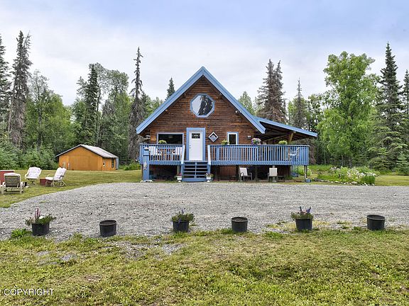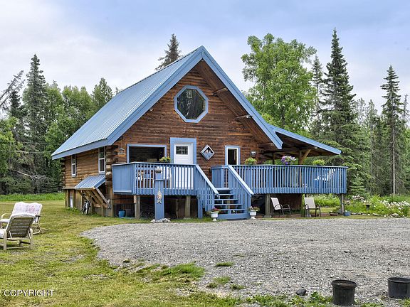 LOG HOME ON 1.58 ACRES! 2,022 SF, 2 bed, 1.5 bath + loft & finished basement! Vaulted living room w/ NEW metal roof + skylights added in 2020! Natural gas forced air furnace, newer vinyl windows upstairs & downstairs, on demand water heater, 24x18 storage shed, 500 SF+ front deck w/ large, covered overhang + gravel parking area. New septic system installed in 2015. All appliances will stay!