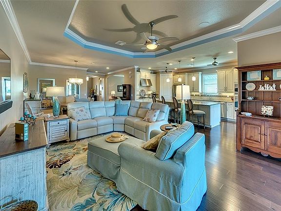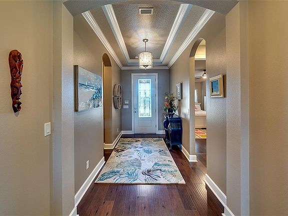 - Interior Features: Ceiling Fans(s), High Ceiling(s), Master Bedroom Downstairs, Split Bedroom, Vaulted Ceiling(s), Crown Molding, Walk-In Closet(s), Window Treatments, Open Floorplan, Solid Surface Counters, Solid Wood Cabinets, Tray Ceiling(s)