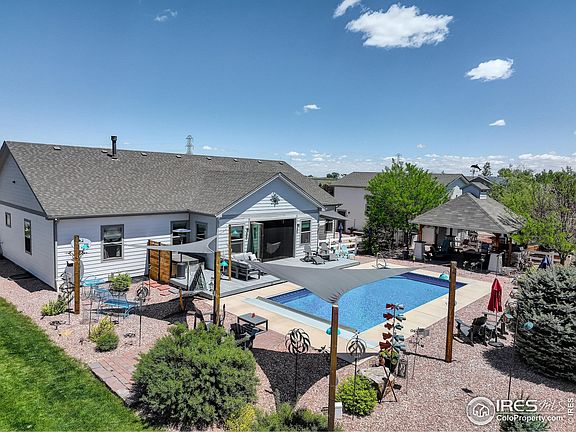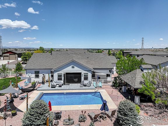 SHIELDS GROUP COLORADO proudly presents this custom-built, Freshly painted ranch-style home to the Northern Colorado market.This Dacono home is truly made for both entertaining and everyday living, with plenty of space and fabulous views. Situated on over half an acre, the extensively landscaped grounds are absolutely awe inspiring and perfect for those who enjoy peace and tranquility.The home offers majestic mountain views, as well as a private pool, garden, pergola, firepit and greenhouse in the backyard oasis. Entertaining is made easy not only outside, but indoors as well. Thoughtfully designed with quality details and finishes throughout, the home boasts 6 bedrooms, 3 bathrooms, an open floor plan and a custom theatre room.Walk outside to find an oversized 3 car garage as well an outbuilding with an abundance of storage space for an RV, boat or other toys.This upscale property is immaculate and move- in ready. 25X14 Sunroom NOT included in Sq Footage! This is the home you have been waiting for!