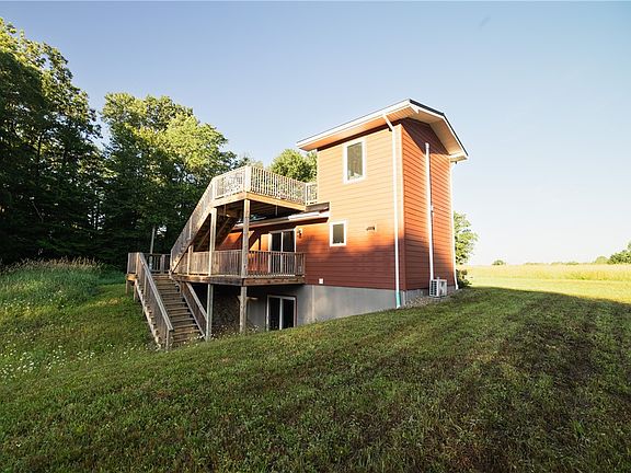 This home was built in 2018. Enjoy nature on this beautiful country setting. Would make a perfect camp. Home is heated with a split air/heat on both levels. Sliding glass doors on every level let you enjoy the views from the 2 teared deck. This home features Hardy Plank siding, Hickory hardwood floors, Superior walls is basement and much more. Come view this one a kind home today. Most of the furniture will be left in the home, so it is move in ready.