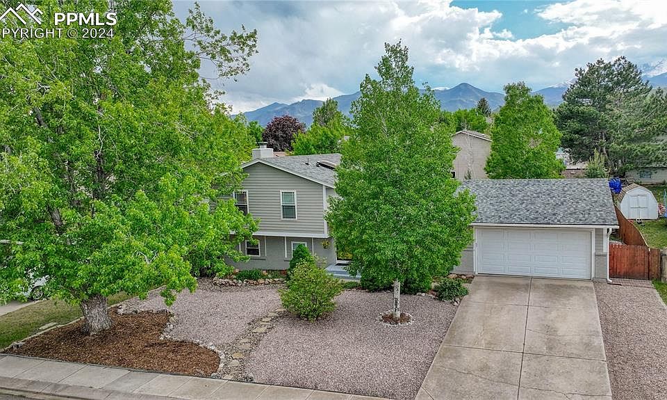 Welcome to this 6 BD/4 BA/2CAR home with fully fenced backyard in the coveted Pinon Valley neighborhood with close proximity to Ute Valley Park, Mountain Shadows Open Space, Garden of the Gods and I-25. As you step inside, the vaulted ceilings, beautiful bamboo floors and stone feature wall create a sense of warmth and character while offering durability and easy maintenance. The kitchen features sleek slab granite countertops, S/S appliances, an induction oven, graphite sink and subway tile. Refrigerator included! Adjacent is the separate dining space also with bamboo floor, vaulted ceiling and chair rail. Upstairs is the primary bedroom with walk-in closet, ceiling fan and adjoining ¾ bath. Also on this level are two additional bedrooms and a full bath with wood-look tile and solid surface countertop. On the lower level is the family room with cork floor, brick wall, wood-burning fireplace and walk-out to the fenced-in backyard. A bedroom with ¾ ensuite bath and the laundry space is found on this level. Washer and dryer included! The basement level offers two bedrooms, one with a ¾ ensuite bath, and a storage room. The garage features a service door to the backyard, a workbench and additional storage. The outdoor living space boasts expansive paver and concrete patios, mature trees and perennials and a 10’ x 8’ shed for even more storage. Fantastic space for entertaining, dining playing and lounging!