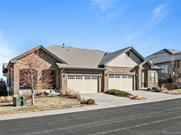 Welcome home to this spectacular, and very special Pradera D.R. Horton ranch, that not only rests on a quiet cul-de-sac, but backs to inspiring views of the open space, and fairway #10 of the Pradera Golf Course! Best lot ever! A rare opportunity to own one of the few patio homes that were built in this exclusive golf club community! These homes seldom go on the market, & you will want to see this well designed & meticulously kept home, w truly amazing & peaceful views from the expansive upper deck, the kitchen, the family room, AND the spacious master bedroom! This gorgeous view makes you feel like your home sits on acres of land! Main floor is filled w natural light, that compliments the rich wood flooring & open and classic design*Spectacular kitchen flows into the eating space & then into the enormous great room w a fireplace* Great room and bsment family rm have been wired for surround sound*Den is secluded w French doors near the entry*powder bthrm & laundry rm door lead to the generously sized garage*Master bdrm can easily accommodate a CA king sized with plenty of space for more furniture without feeling cramped*5 piece master bath en-suite, & a giant sized walk in closet*The professionally finished, barely used walkout bsment will not disappoint w a covered patio plus a hot tub, a second family rm & 2 bedrooms that each have their own bthrms, and a gigantic storage space!stainless steel appliances and some only 2 yrs old*gas cook top*double ovens*Neutral colors for easy decorating*beautiful solid wood doors thru-out*modern rod iron railing to the basement*Private backyard to enjoy peaceful evenings w those gorgeous views*Amenities can include access to the golf club, restaurant and club house, pool, pickle ball, tennis courts, & more! Easy access to Parker, Castle Rock, DTC, DIA, I-25, C-470, shopping, outlet malls, two hospitals, restaurants & more! Come see for yourself & make this stunning house your next home!