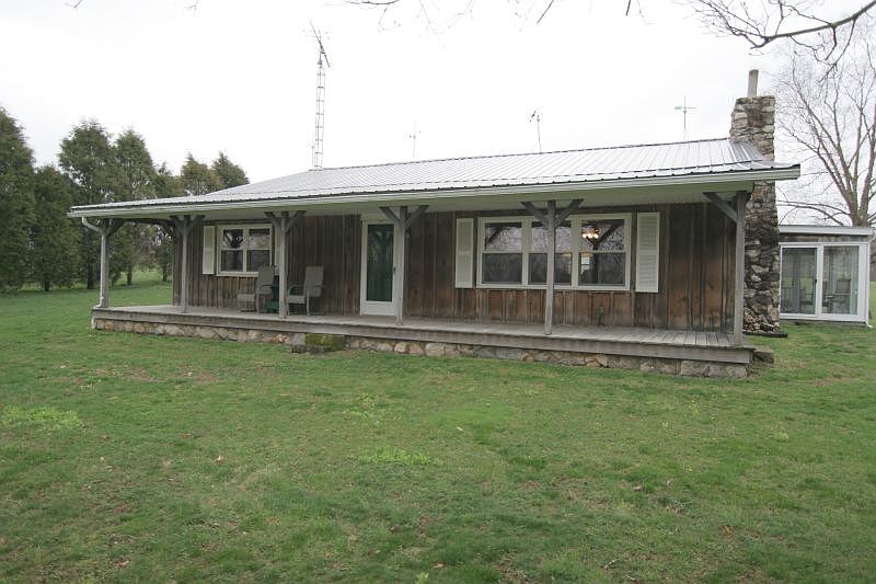 Situated on 16.38 acres is this 1680 sq. ft. rustic home. Features include a gigantic great room with a stone fireplace, an eat-in kitchen, a formal dining area, 2 large bedrooms, 1 full bathroom with a twin sink vanity, and a laundry area with a separate sink. Also included is a sunroom on the south side of the home. Outside you will notice a brick patio, a nice front porch, a carport, a 3 car detached garage and an RV garage. A bonus is the 18X21 pool room complete with the pool table. The property includes a pond and large area for parking.
