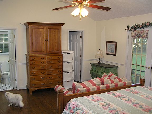 Large and bright 5 bedroom/3 bath single family home in the coveted Broadus Wood School district on a 2 1/2+ acre park-like setting with mature shade trees, evergreens, and a blooming flower and herb garden. The property is situated near the end of a quiet cul-de-sac with the peace and privacy of an established neighborhood. Located just 5 minutes from Broadus Wood Elementary School, 10 minutes to NGIC, DIA, shopping at Hollymead Town Center, and 12 miles from the historic downtown mall and UVA. Hardwood and tile floors flow throughout the 3600+ sq foot floor plan. The main level has 4 bedrooms including a step-down master suite with french doors flowing into the yard, two full bathrooms, and laundry conveniently located next to the bedrooms and main bath. There's a formal living room with a fireplace perfect for receiving guests, a formal dining room, a spacious light-filled kitchen with a breakfast bar, recessed lighting, and pantry which flows into the vaulted-ceiling sunroom/family room, which flows out onto the deck and into the beautiful, flat, shaded and fenced yard - perfect for causal living and entertaining. The walkout downstairs is finished with tile floors, a 5th bdrm, a den/family room with a second fireplace, a walk-in cedar closet, an exercise room, a full bathroom, wormy chestnut wood wainscoting, and unfinished space for storage. Additional features include skylights, cable and high-speed internet ready, full attic for more storage, central heat, central A/C, all appliances (dishwasher, microwave, refrigerator, washer/dryer, stove/oven, 26 cubic ft upright freezer). The property also has a small barn, a separate tool shed, and plenty of parking for family and guests. Enjoy living in the country near the best of what Charlottesville has to offer! Address: 5247 Chestnut Lane, Earlysville Available: June 1, 2015 $2350 Please call 434 nine73-zero23five