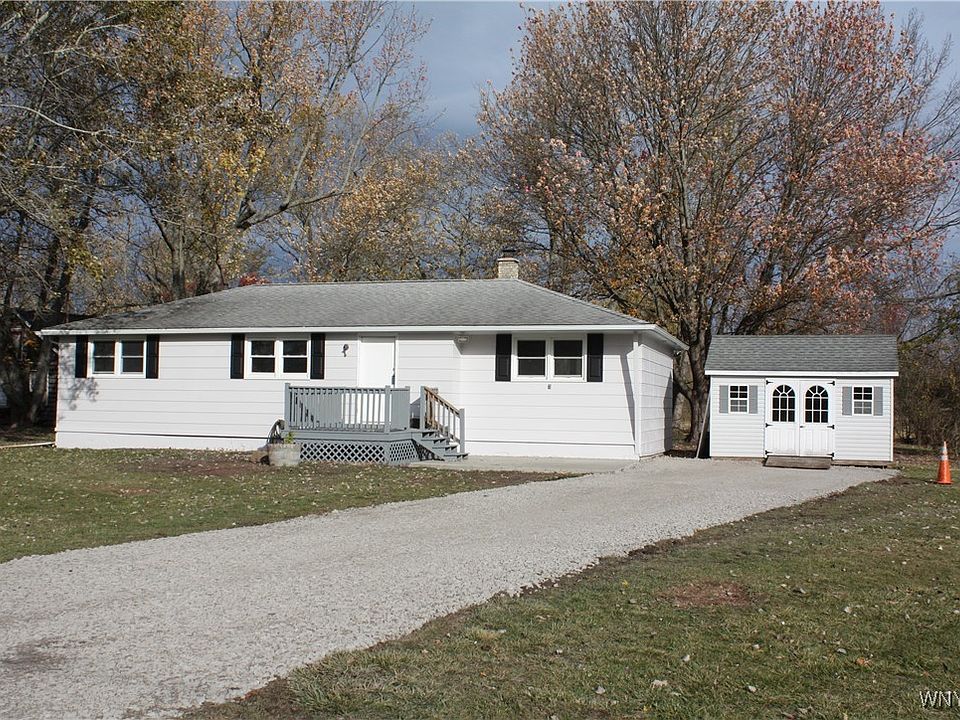 Ranch home in Starpoint school district. Cash only sale. Owner has a good start on the necessary rehab with new furnace, HWT, electric and house generator panel, Generator looks like new. Demolition of the kitchen and bath completed to studs but needs finished. Exterior freshly painted, new stone driveway, great flag lot at 3.9 acres, large storage shed and the roof is in good shape. Many energy efficient vinyl windows. Has both a front porch and rear deck. Owners limited time does not allow him to complete project. Work still being done but looking for someone to take over. Showings start immediately and offers reviewed as they come in.