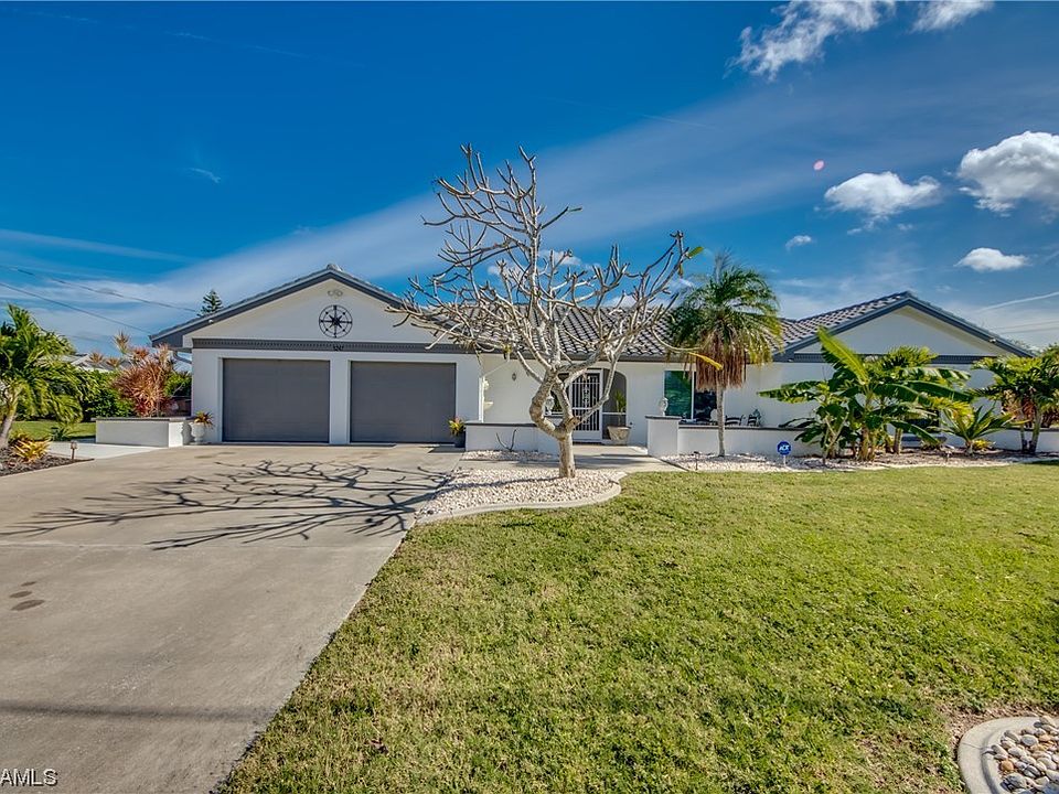 Welcome to Paradise! This recently remodeled home offers an idyllic lifestyle with its pool overlooking the Gulf Access Canal. Nestled in the Yacht Club Neighborhood, this gem sits on an oversized triple corner lot with no HOA restrictions. Indulge in an outdoor haven featuring a boating dock, screened patio, and an indoor/outdoor kitchen. Inside, enjoy the charm of a home with a new tile roof, freshly repainted interiors, and modernized bathrooms boasting new sinks, toilets, vanities, and granite countertops. Versatile spaces are abound, including a poolside bathroom and an attached room for various uses. The master bedroom is a retreat with two walk-in closets, and the laundry room is spacious with a sink and plenty of storage. The vaulted family room with a fireplace connects seamlessly to the eat-in kitchen with a breakfast bar. Step outside to your private boat dock with a lift, just one bridge away from Gulf Access. Explore nearby amenities, with restaurants, shopping, and the Yacht Club minutes away, and beaches a short 25-minute drive. Welcome to coastal luxury in Cape Coral!