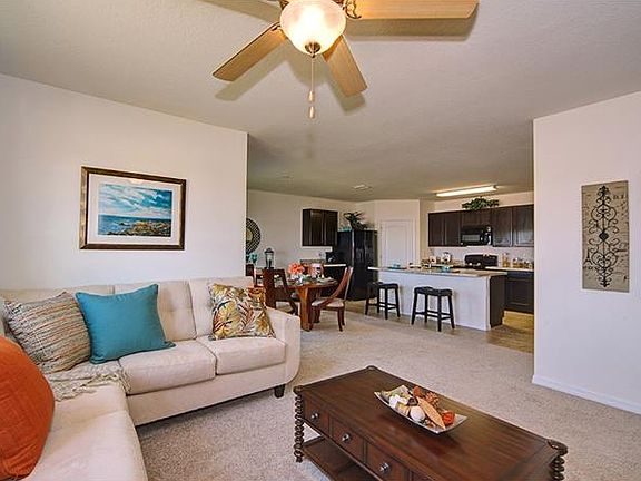 New Construction in SW Bradenton Gated Community- The Cali -1828 SF single story 4 bed 2 bath 2 car garage. The appealing one-story home includes many contemporary features, and an open-concept design and 8'8" ceilings enhance the wonderful feel of this home. The kitchen includes a large island perfect for bar-style eating or entertaining, a walk-in pantry, and plenty of cabinets and counter space. The well-appointed kitchen comes with all appliances including refrigerator, built-in dishwasher, electric range, and microwave hood. The dining room and living room both overlook the covered lanai, which is a great area for relaxing and dining al fresco. The large owner's suite, located at the back of the home for privacy, can comfortably fit a king size bed, and includes an en-suite bathroom with double vanity, big walk-in closet, and separate linen closet. Three other bedrooms share a second bathroom. The two-car garage connects to the front hallway where the laundry room, equipped with included washer and dryer, and an extra storage closet are also located.Close to area shopping and beaches. Photos are of model home only. Additional color schemes and features are available.