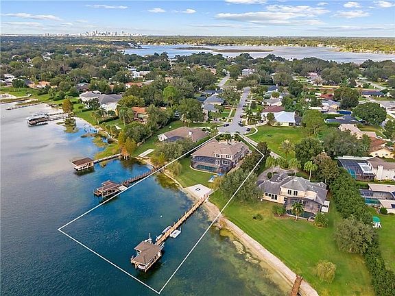 Elegant Lakefront Estate on the Conway Chain of Lakes with more then one half acre of meticulously landscaped yard. Over 150 feet of Prime Conway Shoreline and Sandy Beach. Home has 5 bedrooms, 5.5 baths and over 5000 square feet. Walk through the Grand Foyer and be greeted by the spectacular views, high ceilings, beautiful millwork, niche's and alcoves. True Craftsmanship!! Open Formal Living and Dining are bright and airy. Kitchen showcases GE Profile appliances, gas stove, granite and custom wood cabinets. Family room has large windows that overlook the lake, custom built-in cabinets, fireplace and plantations shutters. Master Suite has sitting area and expansive windows . Master Bath features huge walk-in closet, walk-in shower, barh, his and her sinks. TRUE In-Law suite that is ADA compliant. Upstairs bedrooms feature custom closets and private bathrooms. Large 5th bedroom has kitchenette and bonus room, perfect to transform into a media/theater room/personal gym or playroom. This home is ideal for car lovers with its 4 car garages and work-space. Enjoy outdoor living in the screened in patio with pavers and heated pool. Patio has bar and television sitting space. Sprawling Dock has boat and jetski lifts, and is the ultimate place to enjoy Evening Sunsets. Minutes to airport, downtown, Hospitals and Cornerstone Charter Academy.