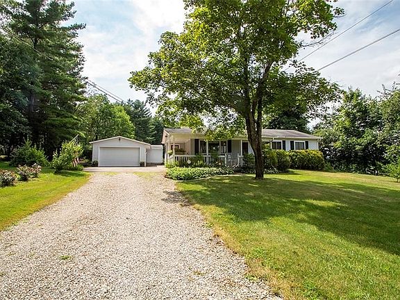 Don't miss this great buying opportunity. This country ranch is nestled on 1 scenic acre. An inviting front porch is the perfect place to sit and relax. This home shows pride of ownership and has been well maintained. A spacious living room offers hardwood floors and built-ins. A nicely remodeled eat-in kitchen features maple cabinets and newer appliances. A beautiful dining room has hardwood floors and a built-in china cabinet. There is a bonus room that is currently being used as a family room that can be a 4th bedroom. 3 additional bedrooms have hardwood floors. A partially finished basement includes a recreation room and a large storage room. Glass block windows. You'll love the two car oversized garage with an attached heated workshop. Additional storage shed. There is a newer back deck with a nice fenced courtyard. Newer furnace and air conditioning 2011. Additional 8 inches of insulation added. City Water.