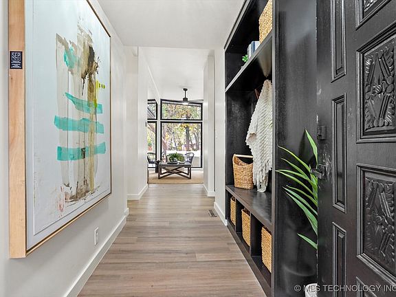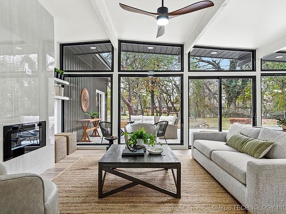 Beautifully Reimagined Mid-century modern in Holliday Hills in Carnegie elementary school district. Rare 1 of only 7 homes in the neighborhood built by Donal Honn (Lortondale architect). Fully remolded to the studs and built better than new. NEW electrical, plumbing, HVAC, cabinets, hardware, LVP flooring, doors, paint, SSA, roof & much more. This home offers a lot of natural light with the floor-to-ceiling Andersen windows throughout. Open living to dining with extensive kitchen with lots of storage, pantry and dry bar. Beautiful foray with crystal chandelier and mud bench. Laundry relocated from garage to interior. Primary has en suite with large bath and walk-in closet. Outside you'll find extensive landscaping, large fully fenced backyard that backs to a peaceful creek. Come make this house a home and live in one of Tulsa's favorite neighborhoods. Seller related to agent