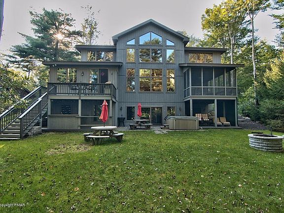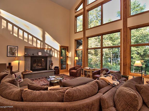 Spectacular Lake Naomi Lakefront - over 3,000 plus Sq.Ft. home has 4 bedrms, study, 4 1/2 baths. Large great rm, Boasts a wall of windows to enjoy the beauty of each season. Destined to become the central gathering place for the family or use as a rental investment. Family room in lover level opens to outside, walk down to lake. Large screen porch, garage, cent. air, multiple storage areas downstairs. Mostly furnished.