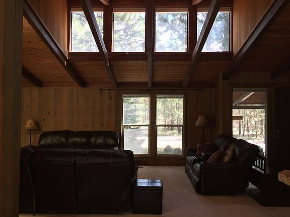 Light, bright & lots of space! Wonderfully maintained home on 1.13 acre on the very north side of La Pine. Vaulted ceiling with skylights & river rock fireplace surround in the living room. Wood accent walls & wood beamed ceilings throughout the home. Beautifully updated kitchen with granite tile counters & back splash. Updated baths with walk-in full tile shower & multiple head system in master. Large partially covered deck with built-in benches. Fire pit with log seating for family fun!