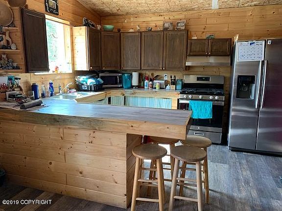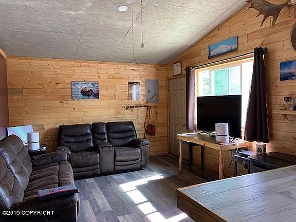 This adorable starter home has 3 bedrooms, one bath, tongue & groove walls for the Alaskan Cabin look and feel, corner lot with circular driveway and over an acre to expand with a shop and garage. This one is priced to sell, bring all offers!
