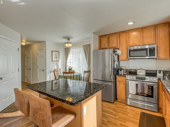 This beautiful, turn-key, 2-story townhouse offers the perfect blend of modern comfort and cozy living. The open concept kitchen/living room opens to a new patio overlooking a large fenced yard. Upstairs you'll find 3 bedrooms, two full baths and the laundry room. The primary bedroom lives large with vaulted ceilings, a spacious ensuite, a walk-in closet and a balcony! Lovingly cared for, this home received new carpet upstairs, laminate flooring in the living room, granite countertops in the kitchen, new heating and cooling systems, a new roof along with exterior painting. No HOA! Make an appointment today! [Home Energy Score = 8. HES Report at https://rpt.greenbuildingregistry.com/hes/OR10221612]