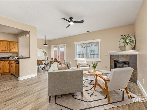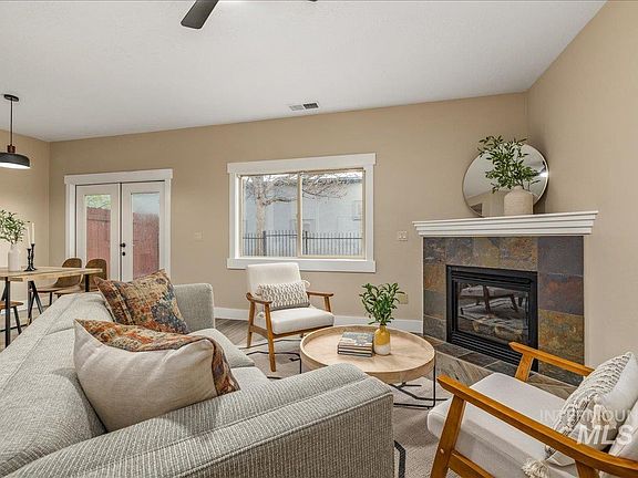 The possibilities are endless for a 1st time homebuyer or investor. New paint, flooring, carpet & light fixtures. Step into a welcoming living space with light, bright windows, a gas fireplace + new, beautiful LVP floors. Main level features half bathroom, breakfast bar + granite countertops & glass door to the backyard + patio. Primary suite boasts a double vanity, walk-in closet & darling shutters. Minutes to BSU, downtown Boise, the Greenbelt, shopping, dining & all you could ask for. HOA dues cover sewer & trash, exterior paint, roof, exterior insurance & maintenance, exterior watering, upkeep of common areas, fencing, streets & driveways. Great lock & leave set up. Turn Key.