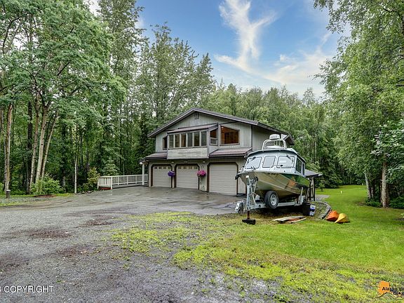 Spacious home close to Sand Lake that is perfect for the growing & visiting family! With 3 bedrooms plus a den/loft upstairs and a complete MIL apartment downstairs, this home features unparalleled versatility. The oversized 3 car garage and ample onsite parking are perfect for all your Alaskan toys and the private park-like backyard creates a woodsy oasis while being conveniently located in town