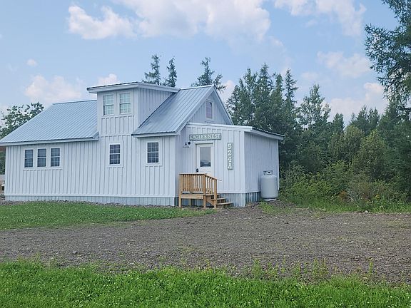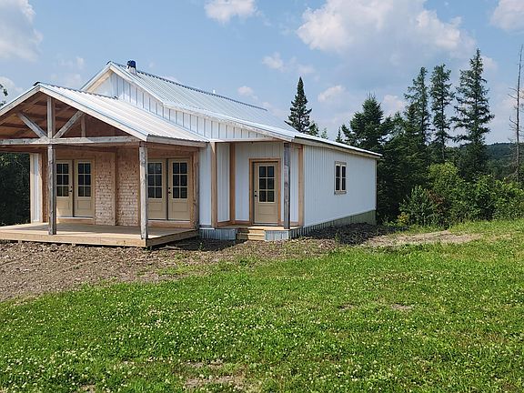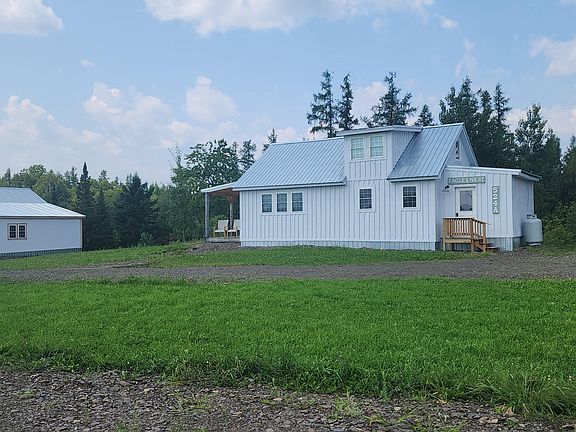 2023 2 bedroom and 1 bath home used for AirB&B and another home which needs to be finished on interior. The site is approved for 4 - 2 bedroom homes and has existing septic and well designed for all. You could continue this plan or use a single family home, live in one and rent the other etc. The land includes a beautiful field and wooded area along with a 6000+/- square foot storage barn. Located on a snowmobile trail, near several lakes, good hunting, fishing and outdoor recreation.
