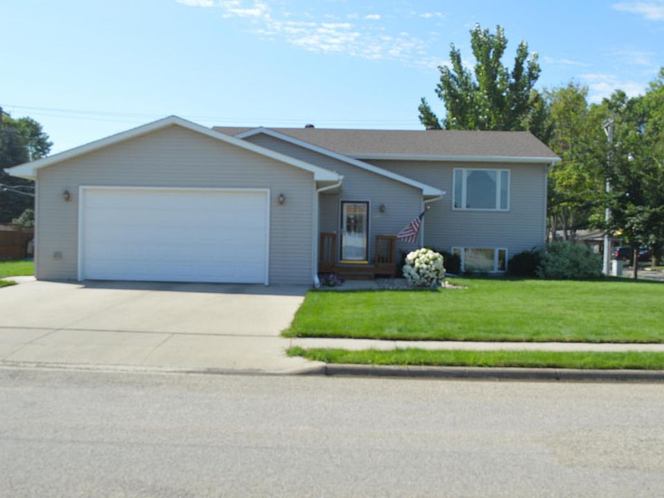 Split foyer home with 4 bedrooms and 2 baths all on a large corner lot. Kitchen features breakfast bar, lots of kitchen cabinets, dining area with patio doors to the deck. Spacious rec-room with gas fireplace Yard has full sprinkler system and storage shed. This home has been well maintained and is move in ready!