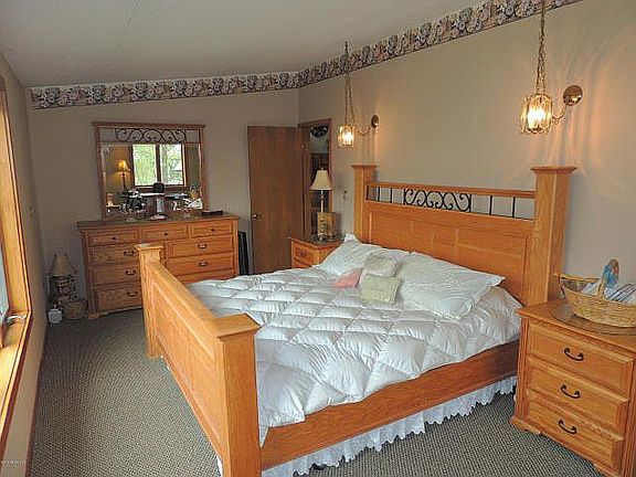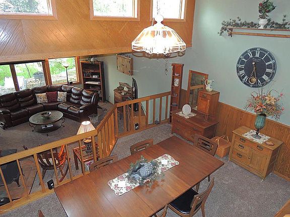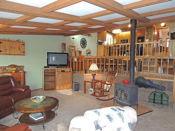 Multi-level, well constructed of poured concrete, 3-car garage, very open layout, beautiful natural woodwork, new appliances, wood stove in living room, lovely gardens