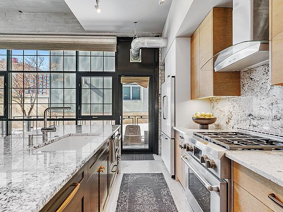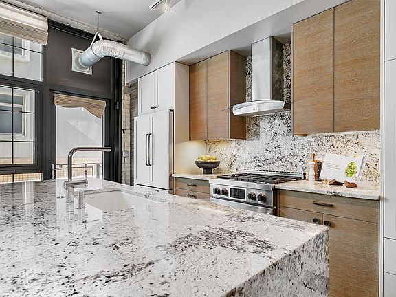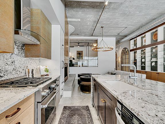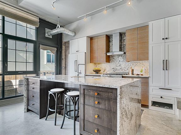 Rare opportunity to purchase this meticulously renovated unit in Bookmen Lofts! Truly a one-of-a-kind designer loft featuring 2 bedrooms and 2 bathrooms boasting concrete floors, beams, and soaring 12ft ceilings. Immaculate custom soft touch cabinetry, built-ins, remote operated shades, gas fireplace and gourmet kitchen. Beautiful floor to ceiling windows overlooking your private patio. Building amenities include the ButterlfyMX virtual doorman system, renovated lobby, fitness room, heated underground parking and community deck featuring fire pits, grills and skyline views overlooking the North Loop. Surrounded by all the trendiest breweries, restaurants, cafes and shops you will love all this location has to offer!