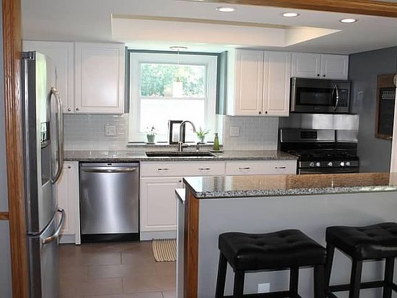 Move-in ready, updated 3 Bedroom 2 Bath on a private park like setting in Western Hills / Stonebridge area of West Des Moines. Large lot on a quiet cul de sac with a city park/green space with creek directly across the street! This 4 level home features an all new kitchen in OCT 2013 with granite countertops, granite sink, glass backsplash, stainless Whirlpool Gallery appliances (gas range with optional electric hookup) and LED can lighting. Open kitchen concept with breakfast bar flowing into dining area featuring refinished oak hardwood floors in July 2015 with new chandler. New quartz countertops, vessel sinks, and faucets in both full bathrooms. Two large bedrooms on upper level with full bath and 3rd bedroom with full bath in lower level with a 4th non-conforming bedroom in the basement. Main level living room open to the dining/kitchen area and then a few steps down to 2nd large lower level living room with wood burning fireplace. New hot water heater and water softener in OCT 2013. New carpet in OCT 2013. New sliding door off kitchen/dining area onto a freshly stained deck. Outdoor living space also includes a limestone patio, fire pit area and fully privacy fenced in yard new in fall of 2014. Attached 2 car garage with large workbench area with storage. New roof, siding and some windows in 2009.