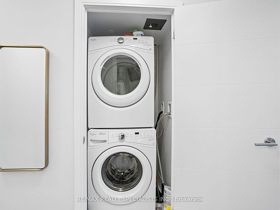 Rarely offered! Stunning 765 sq ft sun-filled 1-bedroom + den condo in the heart of downtown in the prestigious Muse building with one parking spot and one locker(conveniently located on same floor as unit). This immaculate suite features a versatile den with a door and closet making the space ideal as a second bedroom with two full spa-inspired bathrooms throughout. Enjoy cooking in the modern kitchen with quartz countertops, backsplash and full size stainless steel appliances. Desirable floorplan offers an open concept living/dining room area with large windows, pristine laminate floors and a walk-out to the private balcony. Lots of natural light throughout the suite. Unwind in the expansive primary bedroom with large windows, a spacious walk-in closet and 3 piece ensuite bathroom. Desirable downtown location in the heart of King West with a walk-score of 100! Experience the best of vibrant downtown living in the sought-after King West neighbourhood. This prime location puts you just steps away from top attractions such as the Waterworks Food Hall, St. Andrews Playground & Dog Park, Toronto Music Garden, and Grange Park. Enjoy an endless variety of dining, nightlife, and entertainment options, including popular spots like Aloette, Gusto 101, Ruby Soho, Petty Cash, Chubbys, Portland Square + More. With close proximity to The Well, Rogers Centre, the CN Tower, boutique cafes, and upscale shopping, everything you need is right at your doorstep. Commuting is a breeze with easy access to the QEW, streetcar service on King Street just steps away, and a future bonus is the upcoming Ontario Line closeby. Enjoy luxurious living at Muse condos with state of the art amenities including 24 hours concierge, fully equipped gym with yoga studio, steam rooms, whirlpool, outdoor lap pool, rooftop terrace with bbq area, two party rooms, media room and a landscaped courtyard. Experience the best of downtown living!