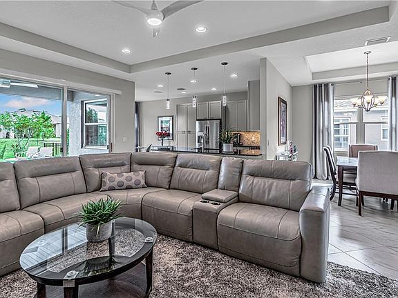 This home is not perfect...but it comes very close! KOLTER IVY model, just 2 years old, with beautiful finishes, location, and upgrades! SPECTACULAR CURB APPEAL...a full variety of LUSH GREEN FLORA IMMACULATELY MANICURED surrounding the structure sophisticatedly adorned with shades of subtle grays! Through a spectacular front door crafted w/various styles of RECTANGULAR- CUT REEDED GLASS, this MAGNIFICENT MODERN HOME is sure to delight with its many HIGH-END FINISHES...from the 20' SQUARE MARBLE-LIKE PORCELAIN TILES below to the MANY ELEGANT TRAY CEILINGS above expanding upward the already VOLUMINOUS CEILING HEIGHT. Immediately to the right, EIGHT FOOT FRENCH DOORS open into a study/den that some have repurposed as a THIRD BEDROOM... or venture further into an GRAND GATHERING AREA specifically designed for ease of flow where spaces, although clearly designated, also spill one into the other allowing for versatility of use. For entertaining, the formal dining is still classic, available for making special times with friends and family possible. The GOURMET KITCHEN features stunning SOFT-GRAY COLORED CABINETRY complete with FULL-LENGTH CABINETRY PANTRY with PULL OUT DRAWERS, UNDER COUNTER LIGHTING, and VENTED MICROWAVE. UPGRADED APPLIANCES (GAS COMMUNITY), GRANITE COUNTERTOPS, STONE BACKSPLASH, and CONTEMPORARY HANGING LIGHT PENDANTS all create a dream kitchen whose ease of use is only lost to its smart finesse. Even casual dining is stylish and a TRIPLE-WINDOW FEATURE provides streams of sunlight and a spectrum of different views in which to enjoy your morning coffee. The ENTIRE BACK WALL IS AN 8' TRIPLE-PLATE-GLASS SLIDER opening onto a COVERED LANAI that extends to an ENLARGED OPEN PATIO the entire width of the home, and the backyard is bordered by an HOA EASEMENT with newly planted trees that will grow also extending the eye-line site and visual interest of this OPEN GARDEN-LIKE AREA. The master suite boasts another TRIPLE-WINDOW FEATURE enhancing panoramic views, and the master ensuite is lavish and luxurious...FRAMELESS WALK-IN SHOWER, SEPARATE ELONGATED VANITIES with GRANITE and a KNEE STOOL, and an ENORMOUS WALK-IN CLOSET. The separate second bedroom and secondary bath assure that any guest will have privacy and a comfortable stay. Victoria Park, Deland's premier residential community, boasts club house, golf course, restaurants, shops, three community fitness centers, three heated pools, walking trails, tennis courts, lakes, & parks and is located just two minutes from I-4 for an easy commute to work, area beaches and all of Orlando's attractions. HOA dues include cable, high-speed internet, and reclaimed water for irrigation.