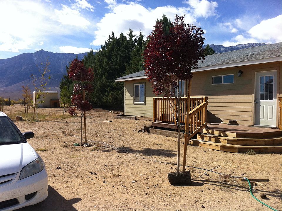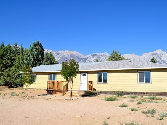 Property in the Alabama Hills at the foot of Mt Whitney. Beautiful view of mountains and rock formations. Bring the horses. Pipe corrals and hay barn. House is currently being renovated, and will include new drywall, paint inside and out, new flooring throughout home, new doors, new hearth with wood burning fire place, upgraded plumbing and electrical, recessed lighting, new kitchen cabinets, counters and fixtures. This was originally a 2 bedroom, 1 bath home in 1999 and owners have added on 2 additional bedrooms and another full bathroom with jetted tub, as well as a front deck.