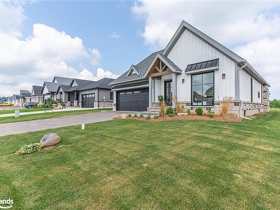 Welcome to your newly constructed bungalow at Cobble Beach, Georgian Bay’s most prestigious golf resort and community. At first impression, you will notice the expansive views of Georgian Bay. The residence is a custom-designed bungalow of 1,922 sqft featuring an open concept floor plan with ceilings up to 14’ high. A mix of modern lines and coastal appeal provide a sophisticated back drop, elevating your day to day. Finished to the highest standards with luxury fittings and serene decor choices in every space. Wood panelled ceilings and wide plank engineered hardwoods provide warmth to this modern home. The chef-inspired kitchen features integrated Fisher & Paykel appliances, quartz counters, ceiling height uppers and butler’s pantry with custom cabinetry. The focus of the great room is a stunning floor to ceiling quartz slab fireplace and wall to wall windows providing unencumbered views. The dining area features a glass wine display wall and patio door which leads to the covered rear terrace with a built-in outdoor fireplace. Conveniently off of the living area, the main level primary bedroom features a wall of windows which invites the tranquility of the outdoors in, a custom walk-in closet, and the dreamy ensuite with stand alone soaker tub and glass shower. Rounding out the main floor is a spacious 2nd bedroom with semi private ensuite, a garage entrance laundry/mudroom complete with built-ins. The unfinished lower level boasts 9’ ceilings and oversized windows, offering potential for a games/media room, storage, an extra bedroom, office, and bathroom. The exterior is elegantly landscaped with gorgeous perennials and double-wide driveway. Poised on 66’ x 148’ lot this home backs onto the 11th hole and green space. Your new home is steps to the golf course, with access to the private beach, trails, pool, gym, US Open style tennis courts, five-star dining and other amazing amenities. Book your tour today and experience what Live Your Luxury truly means.