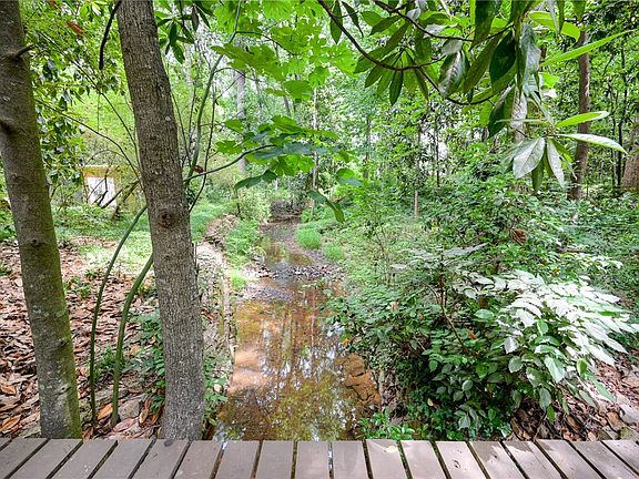 VERY private 1+ acre lot less than a mile from Toomer's Corner. Hidden gem? Secret garden? Slice of paradise? Video Tour Link: https://youtu.be/7oUTVZAJESc Truly breathtaking grounds: incredible gardens & lush landscaping, all ensconced in a protective perimeter of forest. The creek meandering through the backyard includes a storybook bridge & a rock-walled swimming hole fed by a tiny private waterfall! The house is encircled by wrap around porches & boasts unbelievable stonework, inside & out. Circular porte-cochère driveway plus oversized dining & great rooms make this home an entertainer's dream! Owner's suite plus 2 hardwood-floored bedrooms & a full bath on main level, w/ 2 more bedrooms, a J&J bath, 2nd living room, & over 1000' of extra storage space downstairs! 2 storage sheds, old-growth hardwoods & magnolias, room to breathe, & relaxing nature soundtrack included!