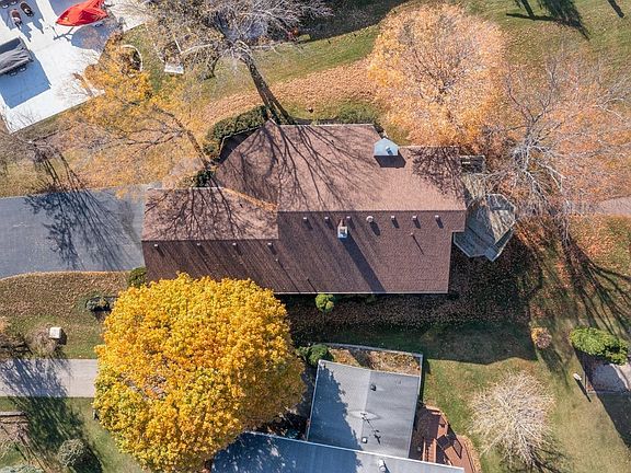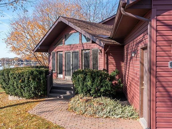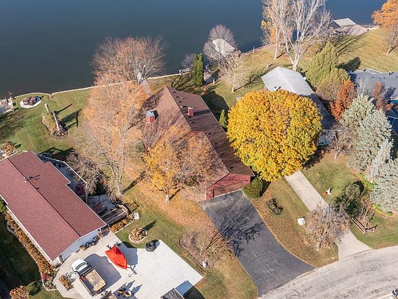 Superior location, newer waterfront shoreline, sunset views and floorplan. The home features a solar envelope design and is essentially composed of a house within a house. https://en.wikipedia.org/wiki/Double_envelope_house Only the lived in spaces are heated or cooled and that results in year round lower energy costs. Beautiful vaulted hardwoods entryway. Cathedral ceiling living great room leads to four seasons lake side porch and upper deck. Eat in kitchen with double oven and stove and large pass through window to dining area. Main floor laundry. Generous, private, lake view master suite with en-suite full bath, walk in closet and second closet. Full guest bath. Two additional bedrooms. Lower level has large wet bar, Big family room with wood burner. Fourth bedroom with en-suite bath. Indoor lake view hot tub room. 2.5 car garage. In house golf cart or boat storage along with a small warehouse sized additional storage space. New roof and siding 2020. New lower level flooring 2021.
