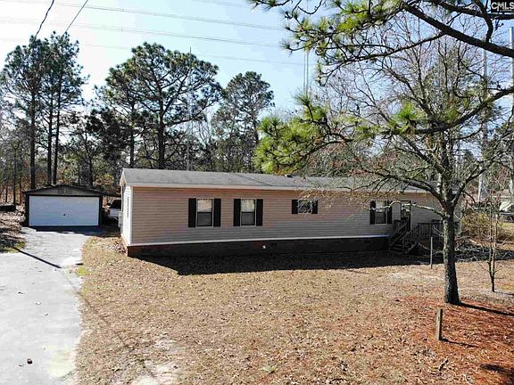 This is an awesome opportunity for the price! The 2 bedroom/ 2 bathroom manufactured home also has a detached 2 car garage with a workshop behind it. The .56-acre lot is partially fenced and has some privacy with an open meadow behind it. The home is well maintained and has large rooms. The living room and kitchen are open and have a high ceiling. The kitchen has a pantry, island, and ample cabinet space. There is a drop in range on the island. The owner suite has a walk-in closet, double vanities, a garden tub and separate shower. There is a covered back porch. It is convenient to I-26, I-77, Fort Jackson, Hidden Valley and Charwood golf courses, shopping, and downtown Columbia