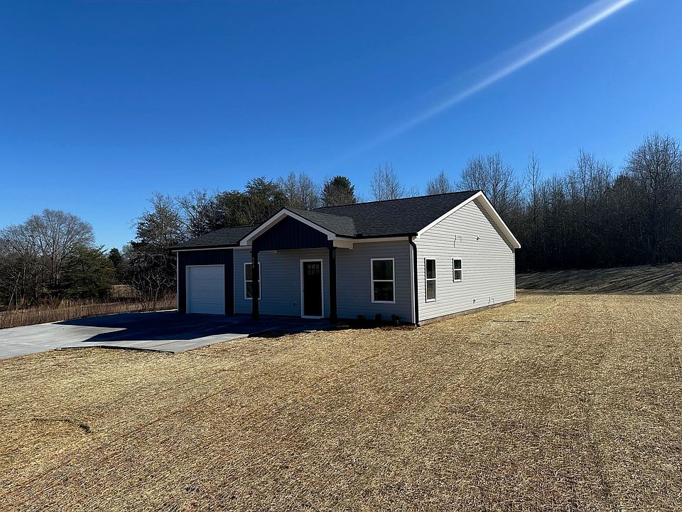 New construction! This one-level home features 3 bedrooms, 2 full baths, smooth ceilings with recessed lighting throughout and attached garage. Great open concept with center island in kitchen. Stainless steel appliances and Corian counter tops. Walk-in laundry room. Patio in back overlooks a large 3/4 acre lot. No HOA. Enjoy low-maintenance, easy living in this adorable home!