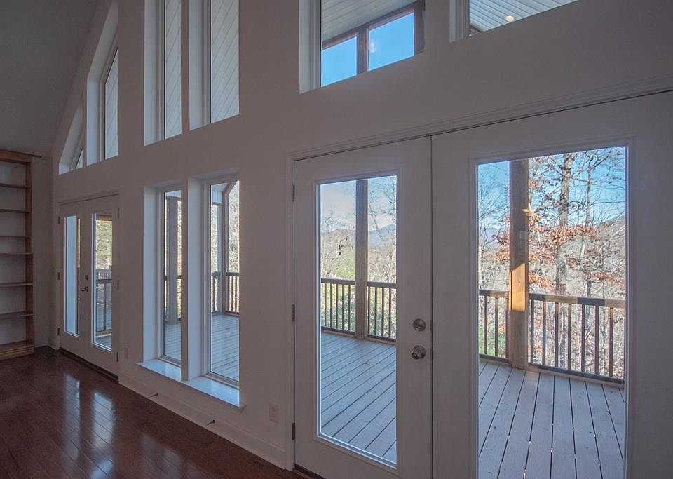 Full cathedral wall of glass windows/doors to allow the sunshine in. Walk out onto the screened porch with your morning or evening beverage of choice. WIRED FOR WHOLE HOUSE GENERATOR. Split floor plan gives added quiet time. The spacious kitchen boasts stunning new CURAVA {recycled glass} countertops, double wall ovens and gas cook top. The soaring cathedral ceiling and beautiful hardwood flooring in the great room will impress you from the minute you arrive. French doors in the great room open to a large screened porch. Large master suite has a wonderful soaking tub, double sinks, his & hers closets, hardwood flooring and french doors opening to a deck with a mountain view. Split floor plan offers 2 additional bedrooms one with hardwood floor. Bathrooms and laundry room boasts new tile flooring. Appliances have been removed except for double wall oven and countertop gas stove. Propane from Freeman Gas. Frontier Fiber Internet IIRC. Recent home inspection available upon signed contract.