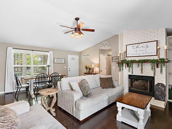 This delightful ranch situated in the center of O'Fallon offers an array of desirable features! The front yard & entrance are beautifully landscaped, creating a welcoming atmosphere. The open layout is ideal for hosting gatherings & entertaining guests. The bright & airy great room boasts engineered wood floors and a high vaulted ceiling. The impressive oversized fireplace and built-in features anchor the room, drawing your attention upward. The great room seamlessly transitions into the kitchen. The ensuite showcases a vaulted ceiling, a spacious walk-in closet, and a full bathroom. Two other generously sized bedrooms share a hallway bathroom. The basement is ready for your personal touch, allowing you to customize it to suit your lifestyle. The sizable backyard is fully fenced. Enjoy outdoor grilling on the recently poured stamped concrete patio. The property also includes an attached two-car garage. Take advantage of the summertime by visiting the popular Bayfield neighborhood pool!