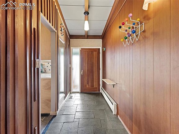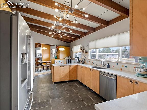 Welcome home to your rare, Don Price Mid Century Modern masterpiece. Don Price designed just over 100 homes in and around the Skyway area of Colorado Springs. Which includes his final project, and personal home, the Circular home. This home Don Price Built on 525 Comanche exemplifies everything the theory of modernism is and was. With a rambling ranch, in the shape of two wings, this stunner has been tastefully update to blend the new and old. Inside, the original slate foyer, welcomes you into the home. To your right, the oversized, Retrovated Kitchen. Complete with stainless steel applicants, retro back splash, and original eat in vinyl booth! Continuing through the kitchen you enter into the grand living/dining/family room. Seamlessly blended together with a built in bar for entertaining, and an entire curtain wall of windows overlooking the private backyard. As well as a true picture window perfectly framing the mountain peaks to the west. In the great room there is also a 3 sided fireplace as the anchor for this wonderful entertaining area. In front of the kitchen is a prime seating area for conversations, with a backdrop of built in wood book case, and the curtain wall of windows. Down the hall is a retrovated bathroom, large laundry room, 2 large bedrooms, and primary suite. The primary suite consists of a walk in closet, and another retrovated, en suite bathroom! In addition to these three bedrooms, the home has a 4th bedroom/studio and 3rd bathroom in an attached studio apartment (complete with kitchenette, laundry, and private entrance. BUYER TO VERIFY PERMITTED USE OF THIS SPACE.). Not only does the home have the future in mind when built, it boasts a high efficacy, forced air heat pump heating and cooling, and back up tankless/high efficacy baseboard heating system. As well as owned solar! And if all that was not enough this home boasts a an oversized 2 car garage, and the modernist masterpiece is situated on a 15,000sf lot! See this Don Price Home Today