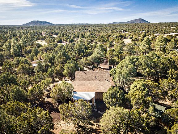 Imagine having your own private paradise with a main house and a guest home all for $215,000. Main home is an adorable site built cabin that has 2 bedrooms and a den that can easily be switched to a bedroom with a closet or armoire. Open airy lodge feel inside with kitchen that opens to living room and dining room area that can be used for multiple purposes. Az Room on back of house can be opened up for those beautiful summer evenings or closed down for winter months to enjoy the snow fall and stay toasty warm. Guest house is a 1 bedroom park model fully contained with a carport. Use it as a rental or perfect guest quarters. Stroll the grounds and discover pathways, fire pits, garden shed, dog kennel, garden areas, 2 car carport, and fully fenced. Home is alarmed for peace of mind