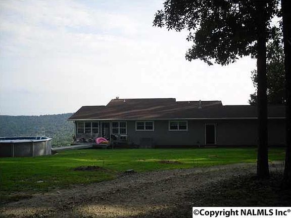 Very private, dead end, overwhelming views. With fenced pasture, pond, small barn, Out Buildings, atv & hiking trails, game plots. Develop-able, many options. Extra acreage available. Less than an hour drive to Huntsville & Guntersville. Wrap around porch, deck, office/den off Master bedroom. ac unit & roof recently replaced.