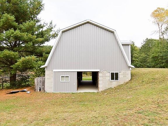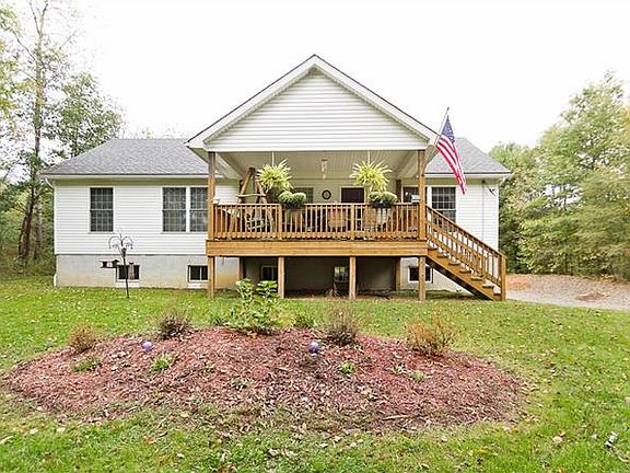 Peace and tranquility surround you in this 10 year old ranch home with 6.65 acres! Beautiful scenery from every window, with no neighbors in sight. Relax on the 17x12 covered front porch or on the 10x9 covered back deck and watch the wildlife in your yard. The barn in the back has 4 horse stalls, concrete flooring a huge 2nd floor and fenced in pastures. You will feel right at home from the moment you open the screen door and enter the spacious eat in kitchen. Counter & cabinet space galore with a walk in food pantry! The living room is 22x13 and opens from the kitchen area. The den at the other end of the LR can be used as a DR or home office. 2 large bedrooms and full bath on the first floor, with the 3rd bedroom and 2nd full bath in the partially finished basement. Superior walls are insulated and finished in the walk out basement, just add a ceiling & flooring. One car integral garage is currently being used for a second kitchen. Wood burner heats the whole house! Welcome home.