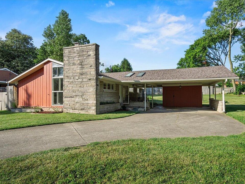 Welcome to this updated mid-century modern ranch in Elkhorn Park! This charming home boasts modern elegance and spacious living on a large, lush lot. Step into the heart of the home with new plush carpet and a stacked stone fireplace. The kitchen features newer stainless steel appliances and sleek quartz countertops, making cooking a delight. Fresh neutral paint throughout gives the home a bright homey feel. The renovated full bath is surrounded by gorgeous tile and modern fixtures. Entertaining is a breeze with two inviting living areas, each adorned with a cozy fireplace, perfect for gathering with loved ones or enjoying quiet evenings in. Need storage space? You're covered with a convenient two-car carport featuring a large handy storage closet. Step outside to discover your private retreats - a covered patio area by the carport, ideal for sipping morning coffee and a charming brick patio off the kitchen, perfect for dining and grilling out or just soaking up the sun. Welcome home to comfort, convenience, and timeless beauty in Elkhorn Park.