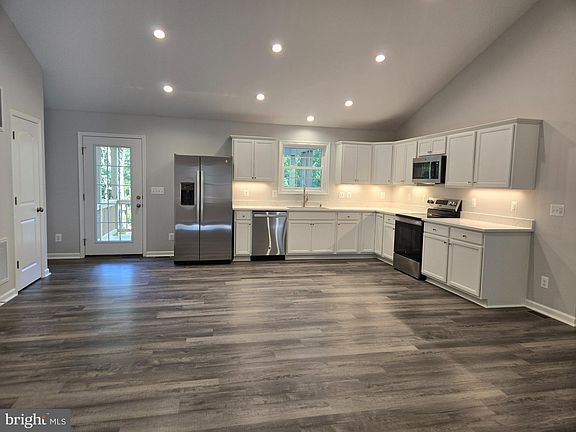 MOVE IN NOW!! New Home built with Quality and Pride on 2.63 ACRES with a TRANQUIL CREEK RUNNING ACROSS BACK OF PROPERTY. This ranch boast an open floor plan, split bedroom design, Cathedral ceilings in living/kitchen/ dining areas, a partial unfinished basement, rough in for third bath, 2 car garage, Upgraded cabinets with soft close doors and drawers, dove tail joints, under cabinet led lighting, kitchen, stainless single bowl sink, GE appliances in Stainless steel, Stove, microwave, dishwasher, refrigerator. Quartz counter tops, quarts vanity tops, pantry with 5 stack wooden shelves, laundry on main level, tons of recessed lights thru out, Monessen linear gas fire place with log set, remote, and surround in steel gray. LVP thru out, Primary shower tiled w/ 12x20 niche, Nice Primary closet 10'7" x 5'5" with 5 stack of linen shelves, 1400 sq. ft. , 6'x24' covered porch, 12x16 covered back deck both with stairs to grade, ***Disclosure Listing Agent is currently a managing member of M.S. Construction, is related to Seller, Seller has an inactive VA RE license, **** ALL PICTURES ARE OF THIS HOME UPDATED 6/16**** OCCUPANCY 6/17** THIS PROPERTY HAS A SMALL CREEK RUNNING THROUGH PROPERTY, LOT CONTINOUS TO OTHER SIDE OF CREEK*** PER NEIGHBORS INTERNET PROVIDER IS XFINITY OR STAR LINK***VERIFY THAT INFO.**