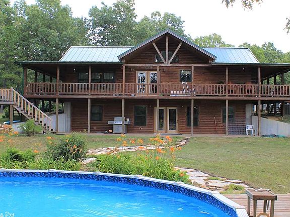 Custom LOG Home with 32.5 acres near Melbourne. This 4bed/2.5 bath home features an open living area with vaulted ceilings, custom kitchen, master bedroom & bath with a walk in tile shower & a large walk in closet. This home also offers a full basement with a craft room and family room. This property is fenced & cross fenced with a 30x40 insulated shop, tractor/boat shed, pool, chicken coop, garden area, & a stocked pond. Enjoy the wildlife & seclusion from the wrap around porch that overlooks the property.