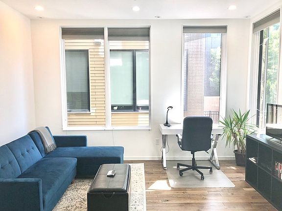 Recently renovated contemporary one bedroom unit with European styling. Open concept living room has corner exposures and nice views. Modern kitchen with Italian cabinetry and stainless steel appliances. Good sized bedroom with spacious built-in wardrobes. Large ties bathroom with shower and tub. Washer and dryer in unit. Central heat and AC. Large private roof deck with spectacular city views. Elevator. Great location near many cafes, restaurants and food shops. Great access to public transportation. Unit is available furnished or unfurnished.