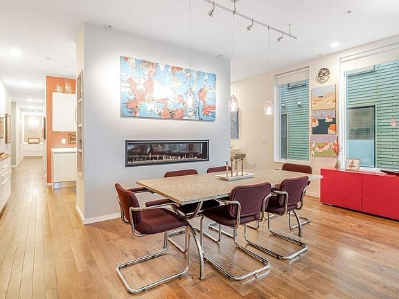 Spacious sprawling single floor residence with high end warm contemporary finishes.Inviting entrance foyer with 2 large coat closets. Oversized open living room and dining room with corner exposures and modern 61/2' fireplace.Great urban views. Superb chefs kitchen with Stainless Thermador appliances. Custom Italian cabinetry offers incredible storage. Futuro exterior vented range hood. Solid Komoto stained hardwood flooring throughout. Perfect floorplan offering much private space and numerous storage options.Master suite with enormous custom walk-in closet plus ensuite spa style bathroom with large walk in steam shower. Nice sized second bedroom with private ensuite bath featuring deep soaking tub.An additional 13'X14' home office/studio can easily be converted to a 3rd bedroom.Additional 3 seasons finished porch not included in unit square footage.Garage parking space with more storage.