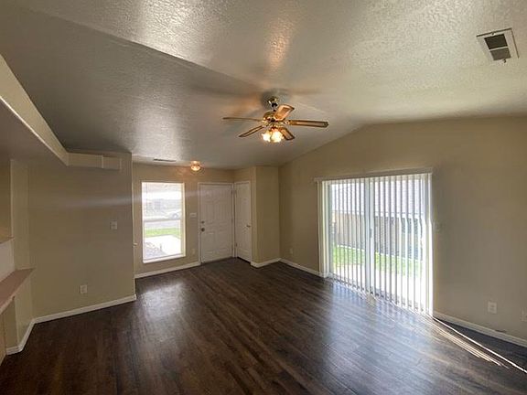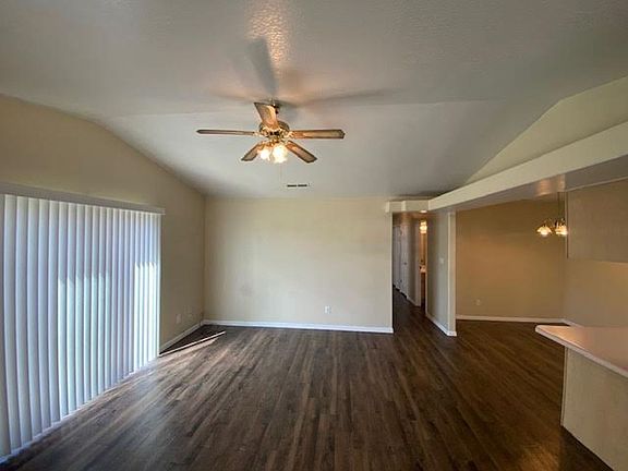 Fenced yardOpen floor planCarpet in bedroomsElectric rangeLots of lightVaulted ceilingCentral heating and ac