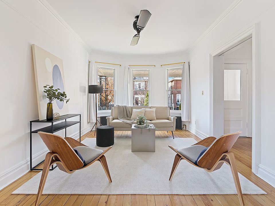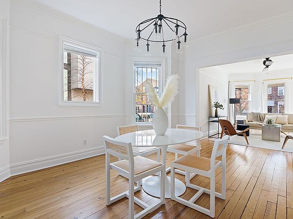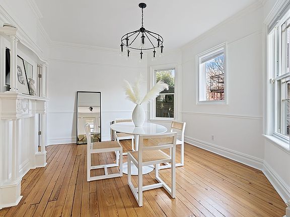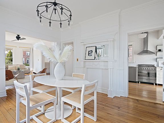 Gorgeous, detached 4+ Bedroom, 2 Bath Victorian on a sprawling, 50 x 100 double lot with parking for three cars! Airy space, gorgeous natural light and beautiful original detail are just a few of the coveted characteristics of this special home. Charming original details include heart of pine floors, stained glass windows, ceiling medallions and moldings. The parlor floor has the ideal open plan with one room flowing into the next. The ample living room has a pocket door and a bay of three windows and leads into the formal dining room with a decorative mantle and another bay of windows. The bright, airy kitchen features Calacatta marble counters over gleaming white cabinetry, a deep farmhouse sink with a Waterstone faucet, white subway tile backsplash and open stainless-steel shelving. High-end appliances include an Italian Smeg range, Liebherr refrigerator and Bosch dishwasher. The kitchen floor boasts reclaimed pine from a 17th century house. A glass door opens from the kitchen directly onto a big deck overlooking the sprawling double lot that feels like a private park! Off the kitchen is a stunning bath with a glass-enclosed shower with Rohl exposed shower hardware, penny round marble floor tiles, and a window overlooking the garden. The second floor has two bedrooms, including a large Primary bedroom featuring a wall of floor-to-ceiling custom closets. The second bath has a clawfoot tub with shower and a window with views of the treetops. The third floor has three sweet bedrooms with windows providing birds-eye views of Brooklyn. Just two blocks to the F train for a quick trip to Manhattan and near the lively shopping and restaurant scenes of Church Avenue, Cortelyou Road and Fort Hamilton Parkway.