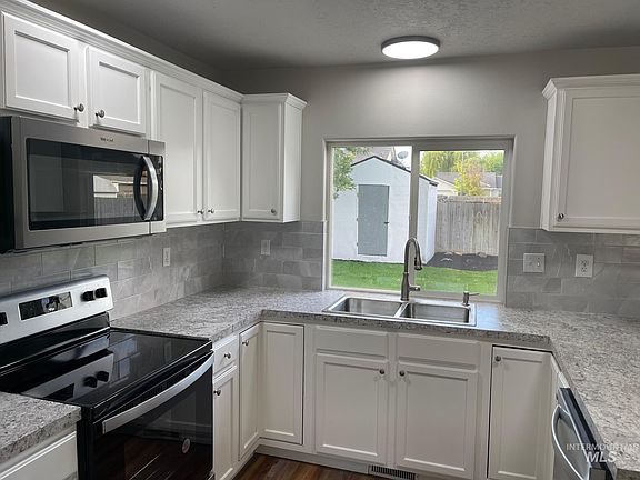 Fresh and Clean remodel. New carpet and paint throughout. New LVP hardwood flooring throughout. Brand new stainless steel kitchen appliances, new counter tops, full tiled backsplash, lighting, hardware. Great value in this 4 or 5 bedroom home, possible office and bonus room, lots of flexibility and storage. Brand new yard and sprinklers, fresh landscaping, bark, rocks and RV parking. Storage shed included and garage box area. Fully fenced in a nice subdivision that is centrally located in Kuna, near High School, shopping and parks. Large 2 car garage with new door and opener. Front covered patio and back yard patio. Clean and move in ready.