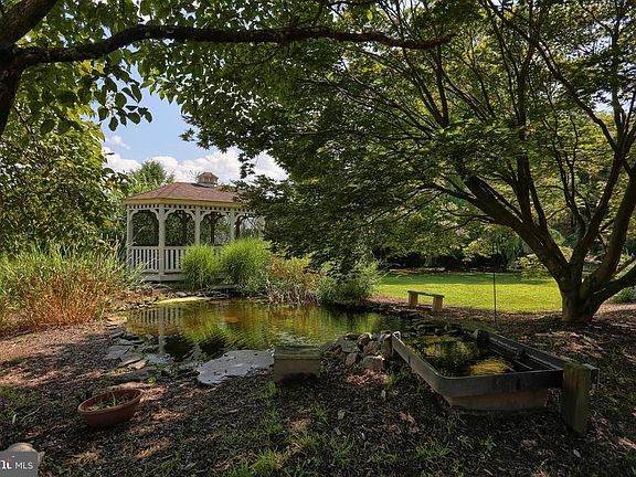 Retreat nestled away with panoramic view. Private setting / beautiful split level w/ hardwood floors throughout / Sunroom w/ skylights overlooking private yard / gazebo & fish pond / replacement windows $17K / solid wood floors newly sanded in 2017 / attractive crushed & glazed concrete garage floor / bay window / private master bath / lower level has brick hearth ready for stove / 300 ft' deep well w/ newer pump / 2014 roof / garage shed & huge double shed with workshop.
