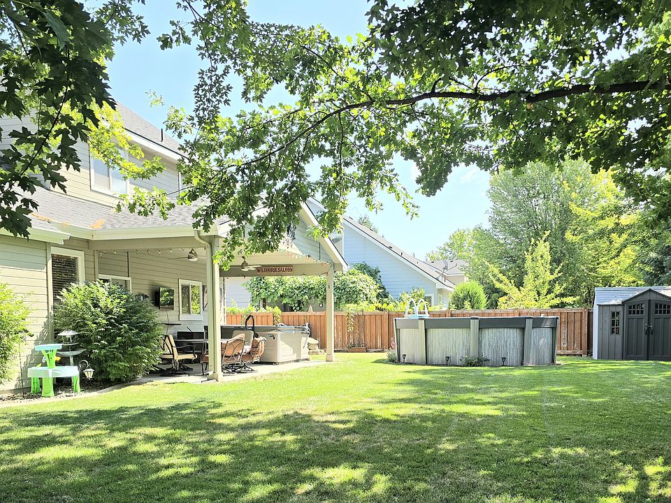 Your private oasis in a quiet, friendly neighborhood! This beautifully maintained 4-bedroom, 2.5-bath home offers comfort, convenience, and a truly relaxing atmosphere. Step outside into your backyard oasis, complete with a large above-ground pool (has a child safety ladder), a beautiful hot tub, and a wall-mounted outdoor TV on the patio perfect for relaxing evenings or entertaining under the stars. Pool and hot tub maintenance are included, so you can enjoy the fun without the hassle. Inside, enjoy the fully equipped home gym featuring a treadmill, sauna, Peloton bike, and a variety of additional workout equipment all included and ready to use. (Tenant responsible for Peloton membership, currently $44/month.) The spacious backyard is shaded by mature trees and includes two sheds: A large 8x10 shed for extra storage or projects A smaller pool shed (5x4) perfect for storing pool toys and accessories Step inside to find fresh paint throughout, an open and bright layout, and plenty of space for comfortable living. The kitchen features a HUGE walk-in pantry. The primary suite includes a bidet for added comfort. For cooler months, cozy up with the warmth of a pellet stove, with a large stash of pellets included to get you through the winter season. Families will love the location just a 3-4 minute walk to Prospect Elementary School, with the added bonus of no cars parking in front of your home. Set in a quiet, well-kept neighborhood, this home offers space to relax, play, and recharge all without sacrificing convenience. Whether you're hosting friends, working out, or winding down after a long day, this home checks every box for year-round comfort and lifestyle. Are flexible with move in date and can be sooner than September 1st if needed. utilities not included